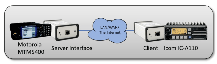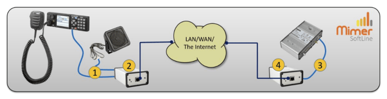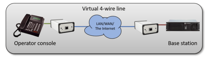 This can be used in several ways, both for radio systems and for other purposes. Often the setup is used for bridging radio systems or for cross patching of radio systems. It is also used for eliminating old 2 or 4-wire leased lines and instead use LAN, WAN or the Internet.