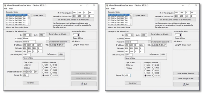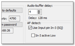 The default setting is that Audio data starts when the internal AF detector senses an AF signal at the input. The threshold for this can be set using the Mimer Network Interface Setup program. In some setups the audio line is full duplex.