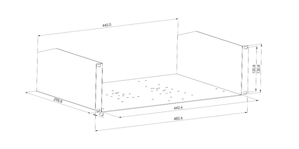 The Open Rack Shelf is a standard 19” 3U shelf. The detailed mechanics are described further down.