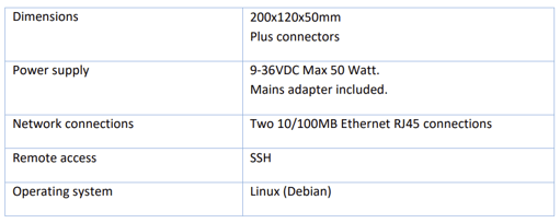 The server is based on a rugged industrial x86 PC that runs a Debian based Linux operating system.